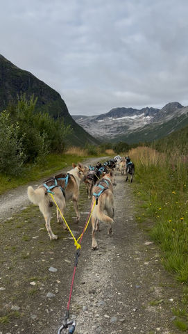On this trip you will be brought to our dog yard at Leirstrandvegen 227, 9106 Straumsbukta. When the dogs are pepared we will drive together to our trail where the wagons are placed. As a visitor you get the opportunity to sit in one wagon driven by one of our professional mushers. Each wagon has two seats, which is excellent for enjoying the experience with a friend or family, children are to be accompanied by adults. During the ride we will take you trough our husky trail in beautiful landscape. Afterwards you get time to greet the dogs of your team, show them love and ask any question to our workers. Our employees will also be able to share their experiences and stories so you can get to know more about the work that we put into our dogkeeping.